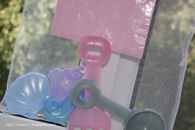 Очень удобная сумка для песочницы: домой приносишь игрушки, а песок остается там, где и положено - на игровой площадке. Иногда, там же остаются и формочки, совочки и грабельки.